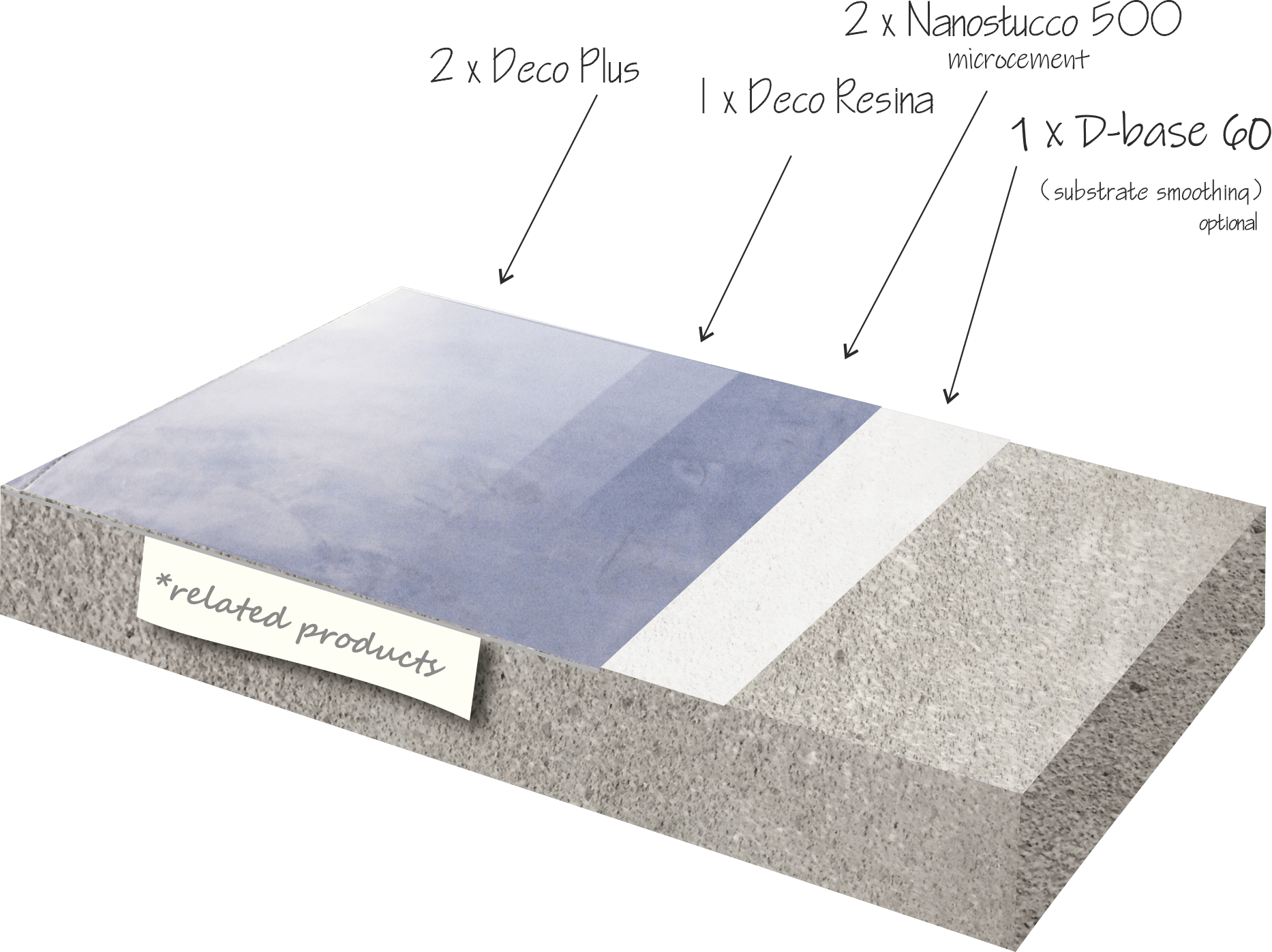Le microciment Nanostucco 500 est utilisé comme finition sur les sols, les murs et le mobilier. Il s’applique à la truelle en une épaisseur de 0,8 à 1,2 mm.
