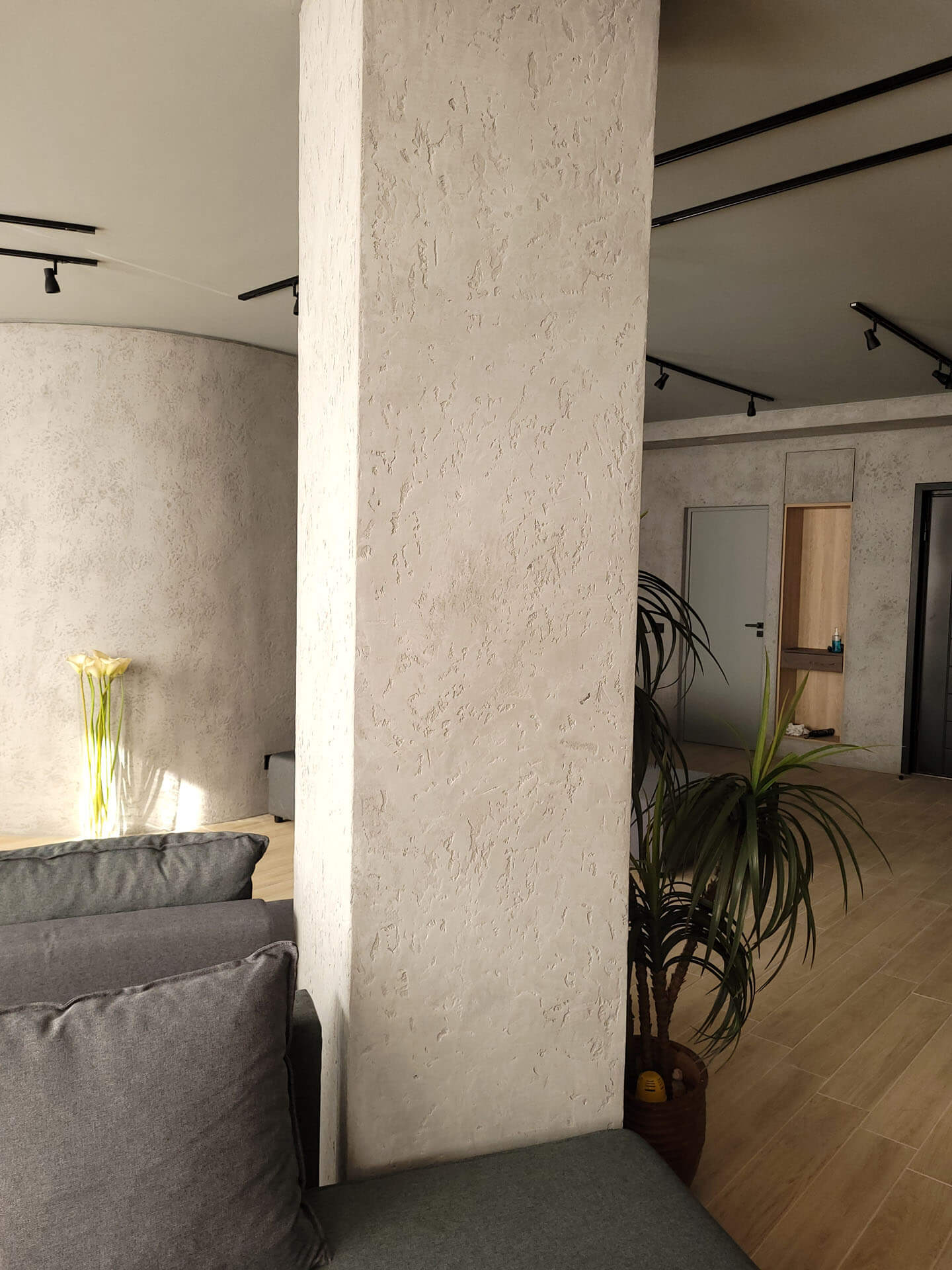 Το σύστημα Element 20 fair-faced concrete, εφαρμόστηκε στην εσωτερική τοιχοποιία της κατοικίας, προσδίδοντας έναν ιδιαίτερο και μοντέρνο βιομηχανικό χαρακτήρα στον χώρο.